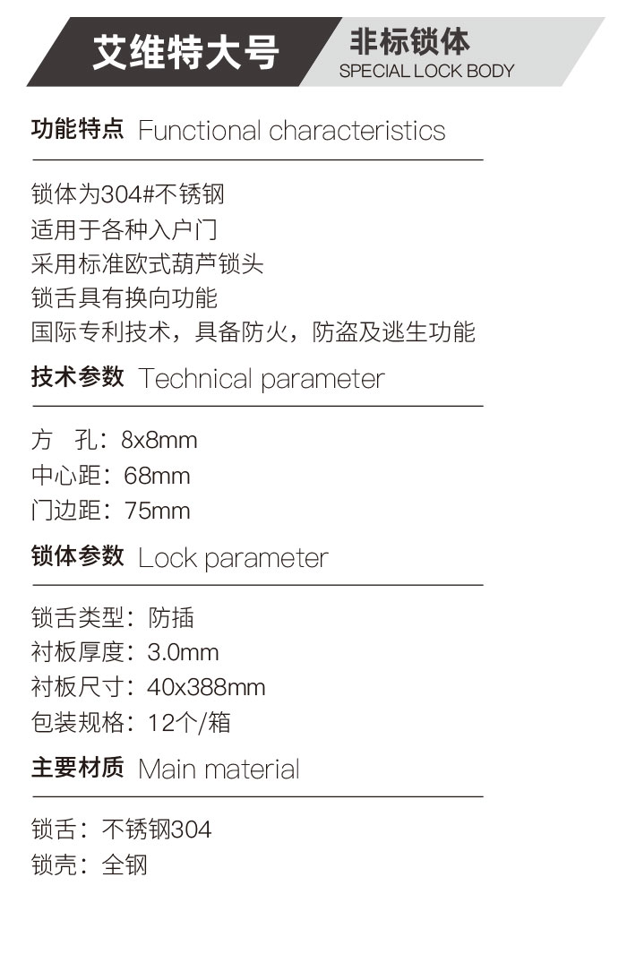 产品简介:非标锁体系列-艾维特大号